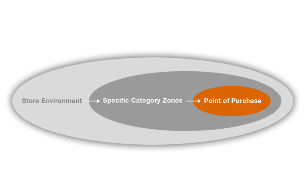 ● The “right message at the right time” translates to communicating to customers with consideration for their location and mindset within the store environment.