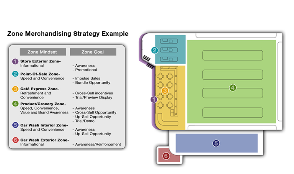 ● Designating zones allows us to create unique spaces within the store based on the customer’s mindset, actions, and needs.